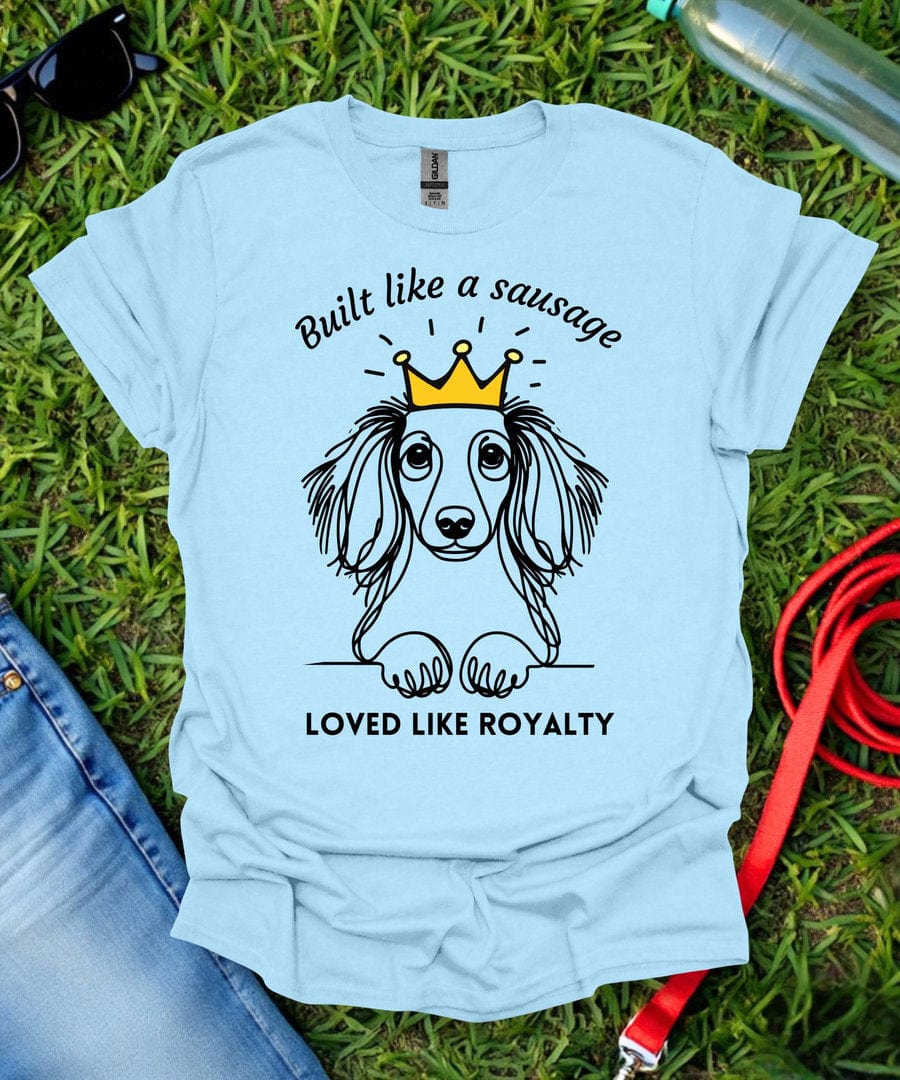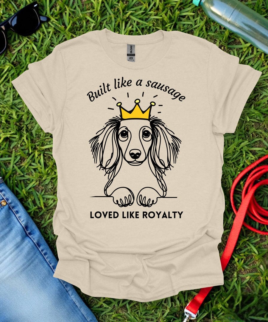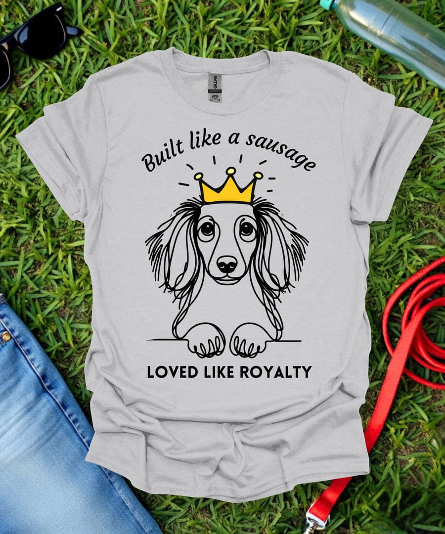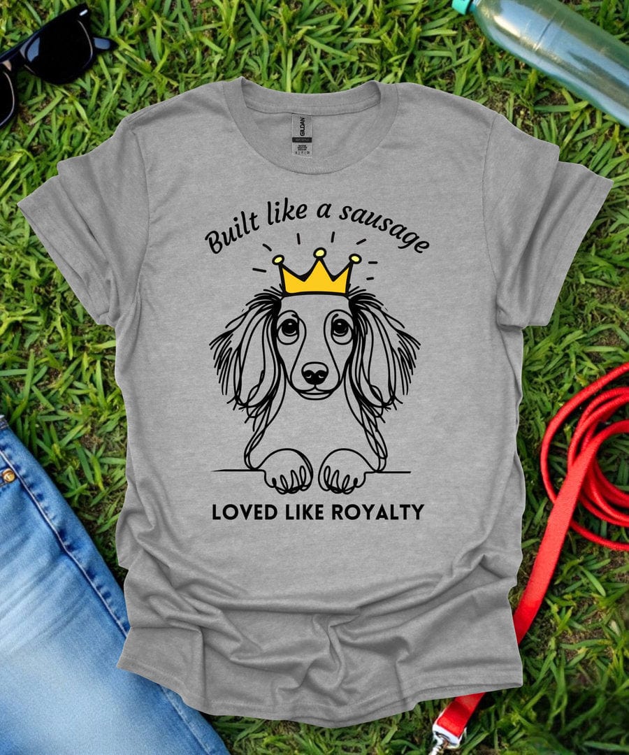 Built Like a Sausage (Long haired Dachshund) T-Shirt