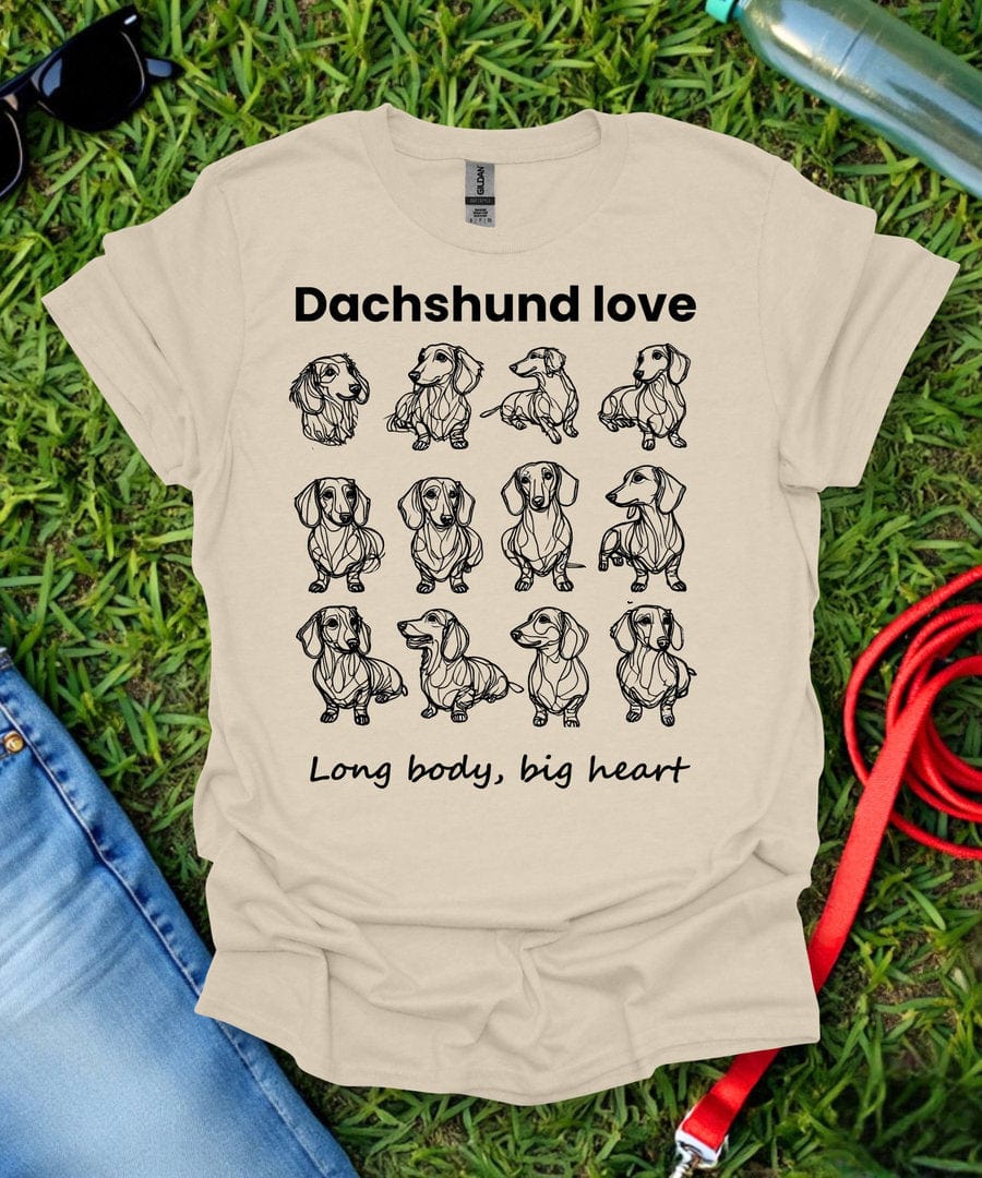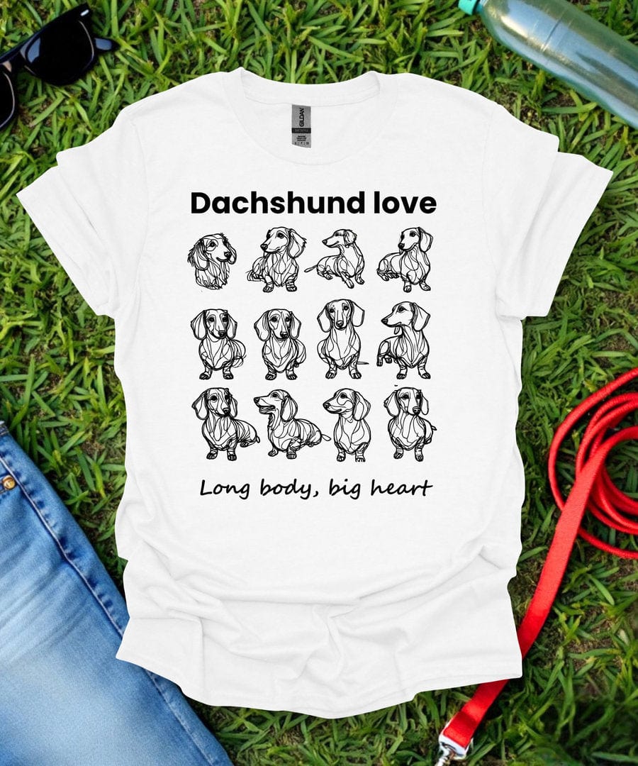 Long Body Big Heart Grid Dachshund T-Shirt