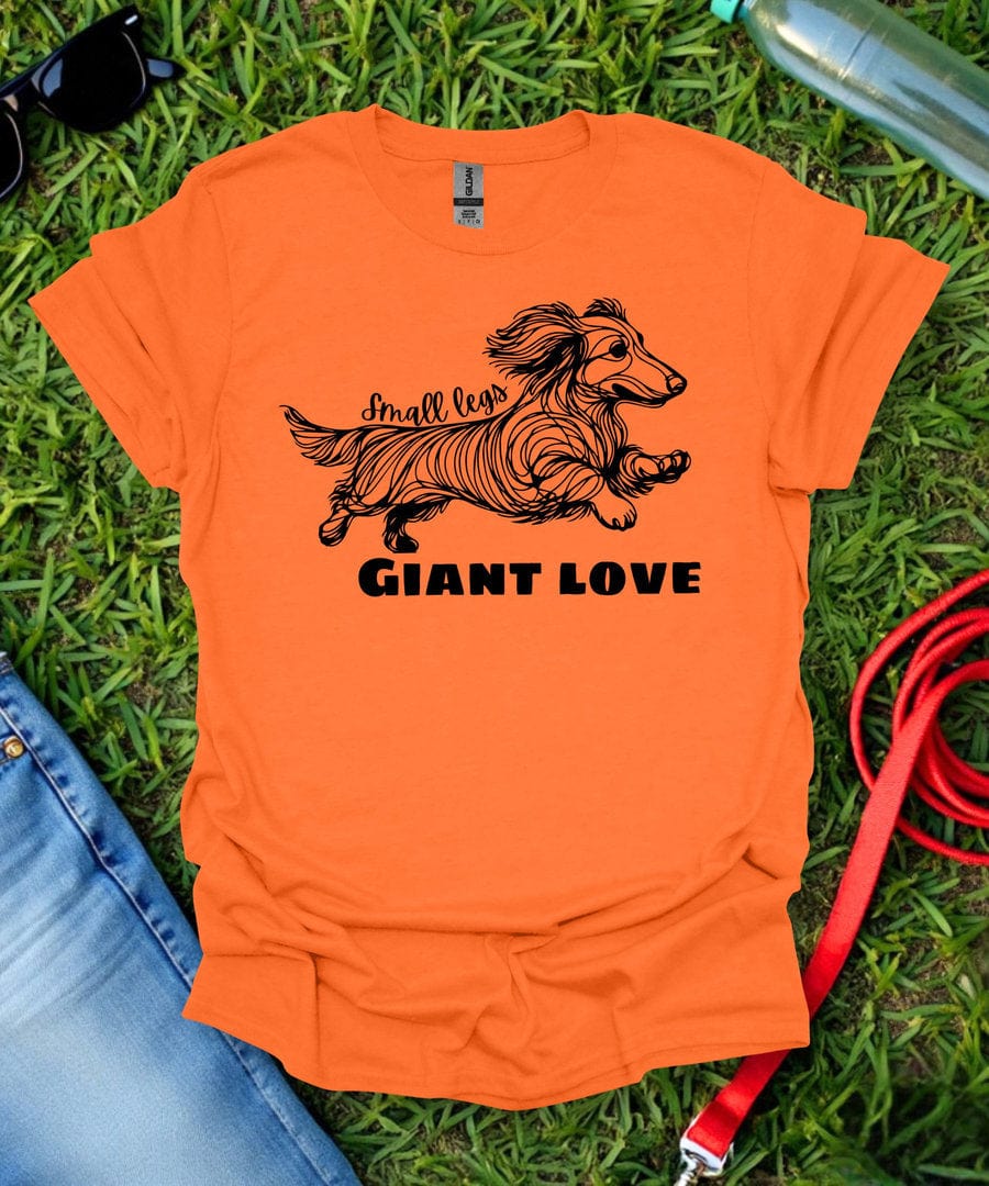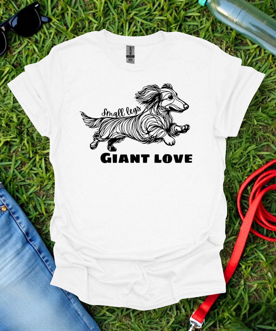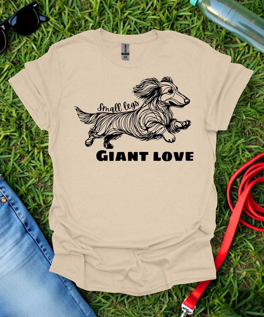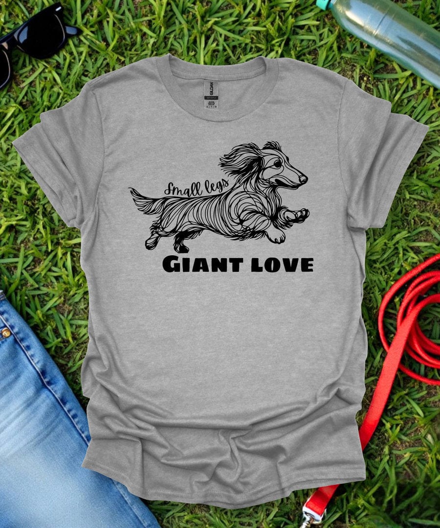 Small Legs, Giant Love (Long haired Dachshund)T-Shirt